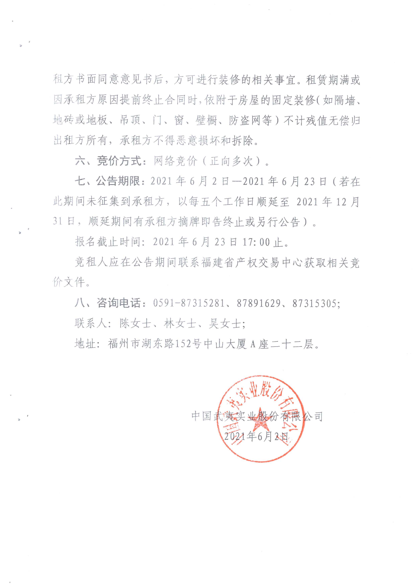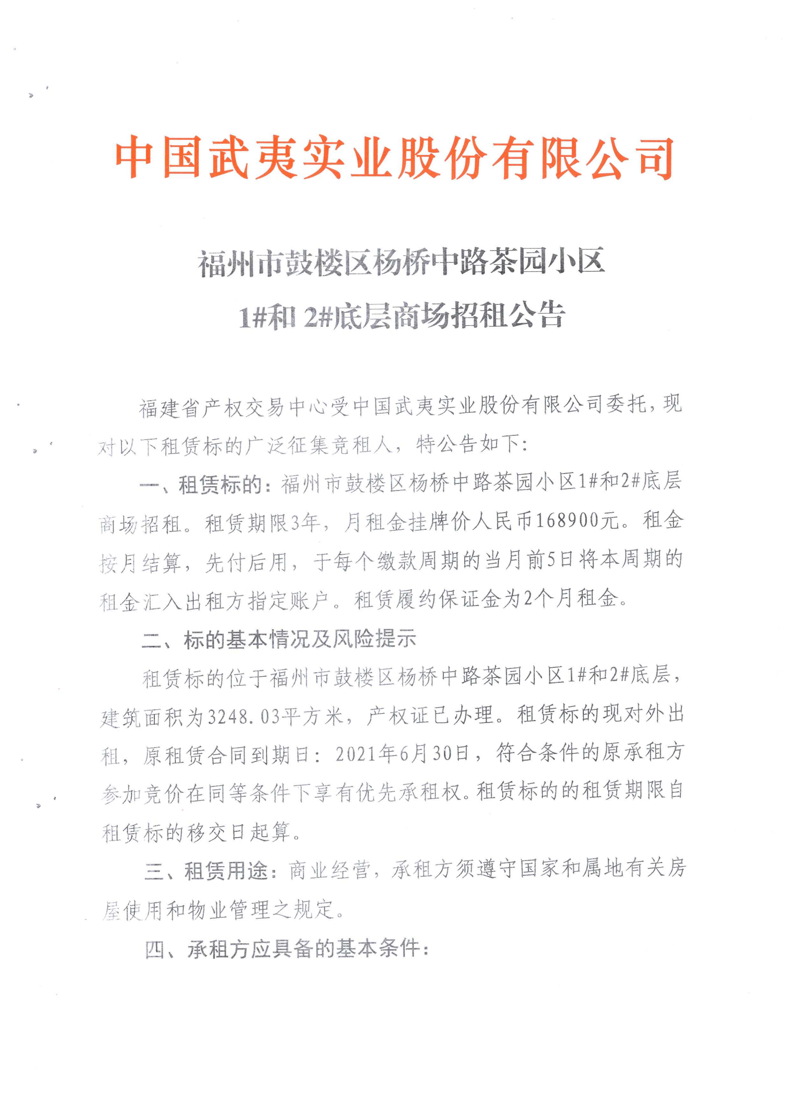 【招租公告】中國(guó)武夷實(shí)業(yè)股份有限公司關(guān)于福州市鼓樓區(qū)楊橋中路茶園小區(qū)1#和2#底層商場(chǎng)的招租公告